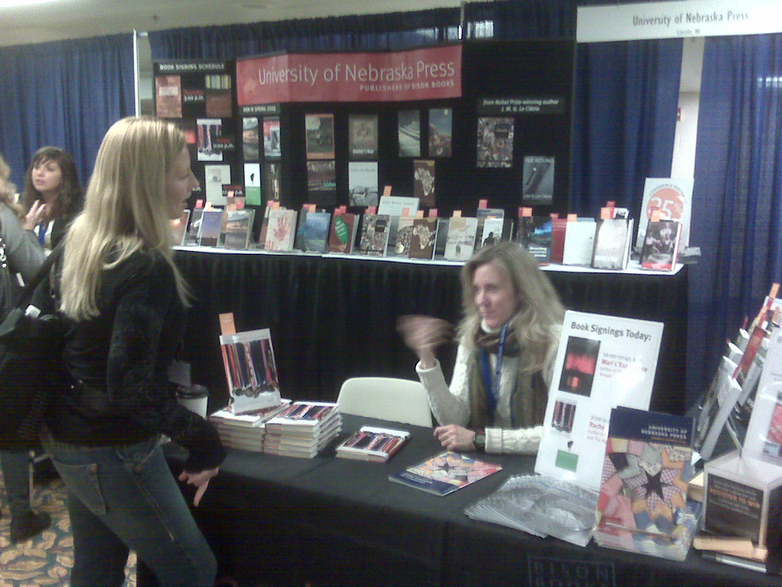 Moving on, The Association of Writers and Writing Programs (AWP) had its conference last week in Chicago. Here’s Rachel Toor, author of Personal Record and upcoming Bison title The Pig and I, in action at the conference.