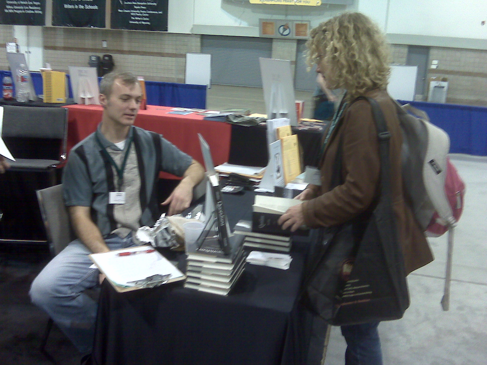 Patrick Madden, author of Quotidiana, signs books at the University of Nebraska Press booth.