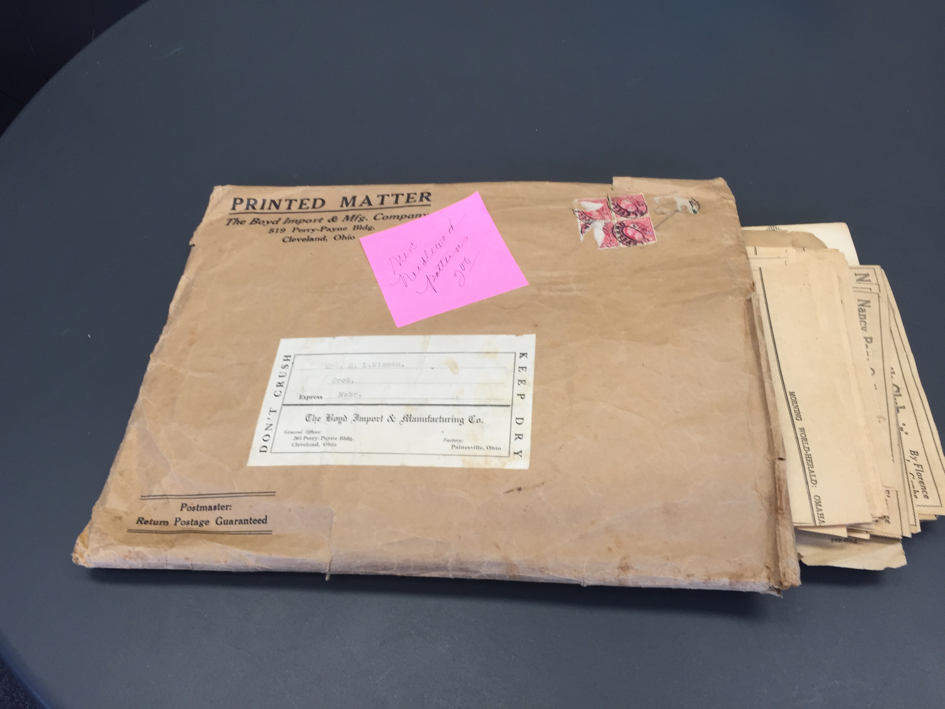 I didn’t do anything with the patterns for a couple of months until I showed them to my co-worker, Amy. She discovered that the collection included an entire set of state flower and bird quilt square patterns that were published in the Omaha World-Herald from January 12, 1938 (Alabama) to December 7, 1938 (Wyoming). Nadine Bradley wrote the weekly Wednesday post and included a new pattern each week. I wonder if quilters actually finished a square before the next one was published. It would probably be possible to do that without today’s digital distractions. This project was their version of online gaming, leveling up each week!