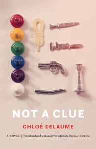“Delaume’s first novel to be translated into English is a sly and thorny work that loosely takes the form of a game of Clue, and even more loosely takes the form of a novel. The six murder suspects are psychiatric patients in Paris’s Saint-Anne’s Hospital, and each gets a few chapters providing their backgrounds, how they wound up institutionalized, and attributing to them a name from the board game.”