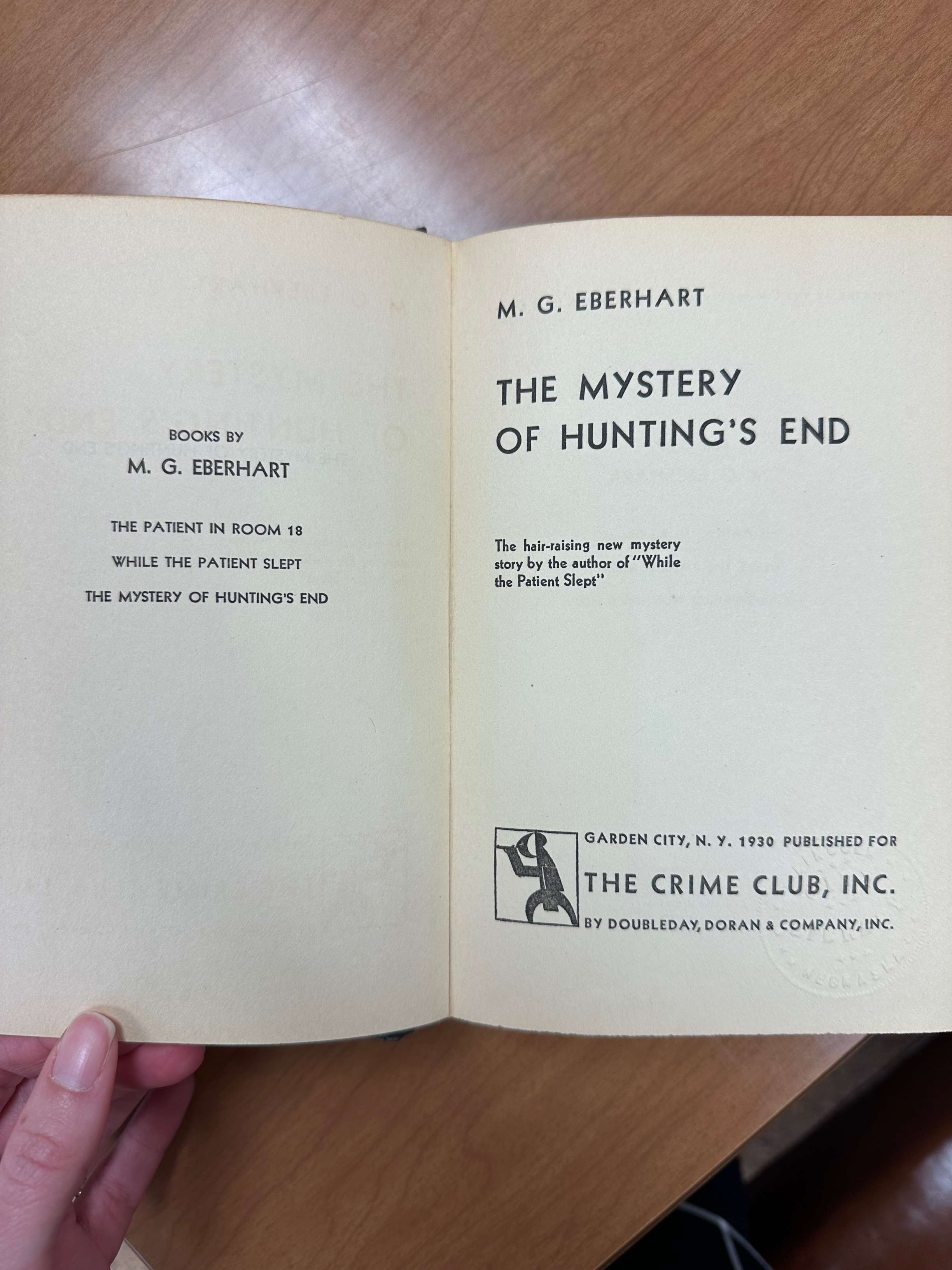 We thought we’d mark the occasion—with a “first” of our own—by sharing photos of the first edition of the One Book One Nebraska pick of this year, The Mystery of Hunting’s End by Nebraska’s own “whodunit Queen,” Mingon G. Eberhart.