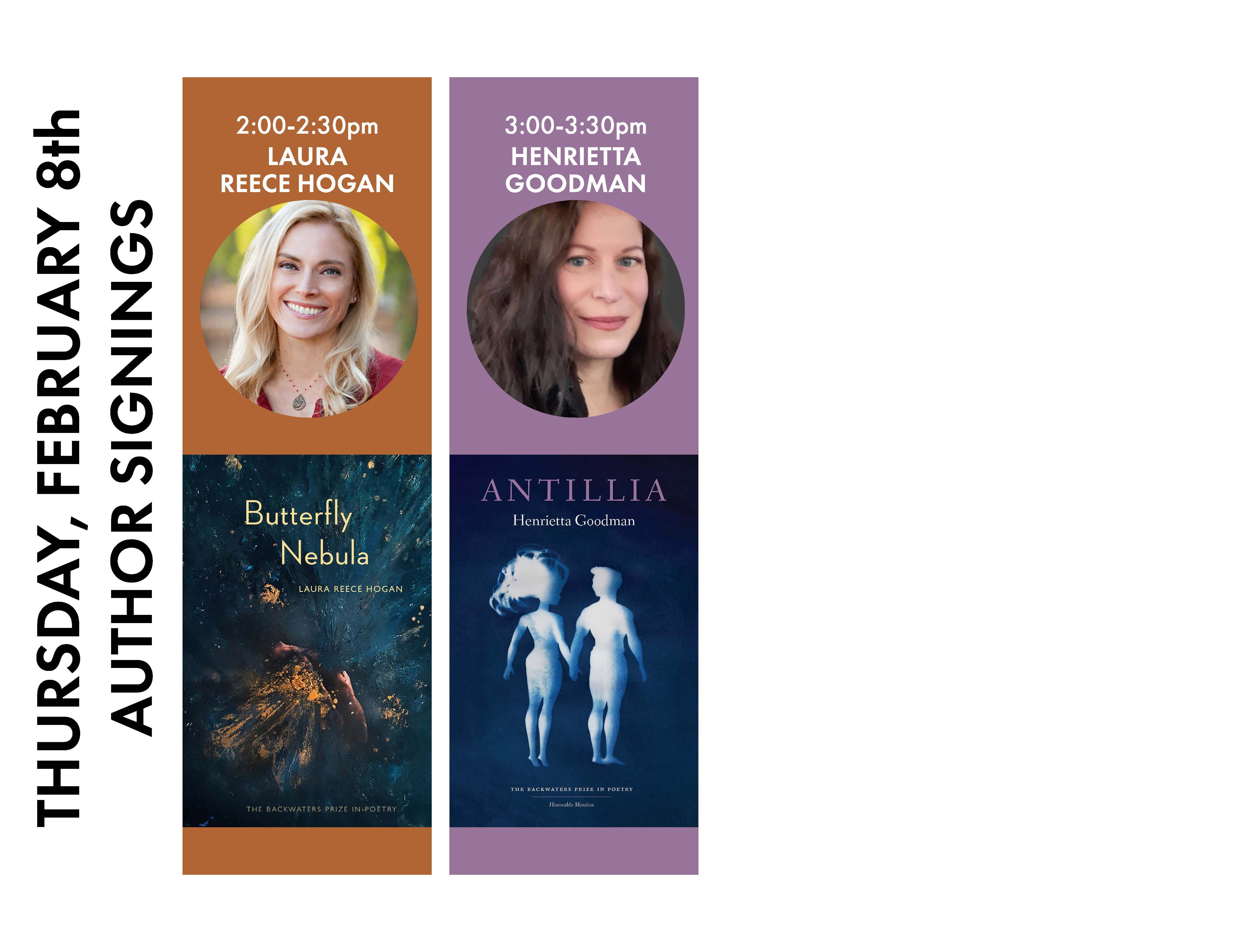 2:00-2:30 p.m. book signing with Laura Reece Hogan, author of Butterfly Nebula