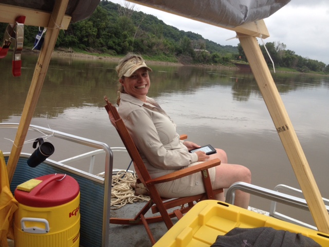For most of the chapters, though, I worked as hard as I could to create transitions, to figure out ways to move gracefully from the complexity of underwater engineering, flood data, and endangered species I hadn’t seen to the experience of sailing what one relative called “elderly flotsam” down the longest river on the continent. I sifted through mountains of research, looking for not just the important historical facts and scientific data, but for ways to connect it to the story of the trip, the story of my family, the story of the 40-year-old pontoon boat that somehow survived 750 miles on the Missouri River intact.